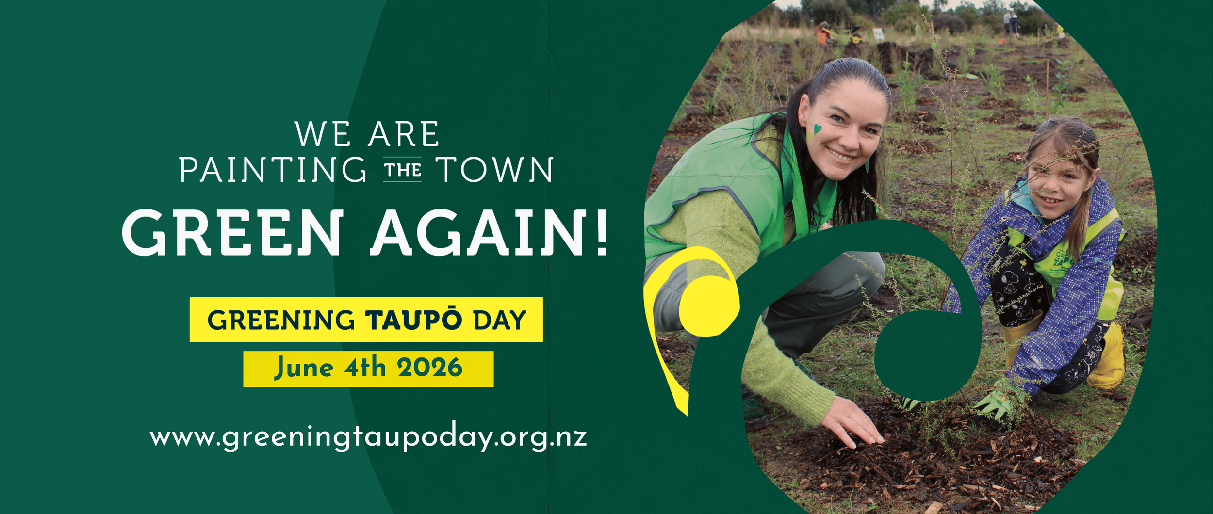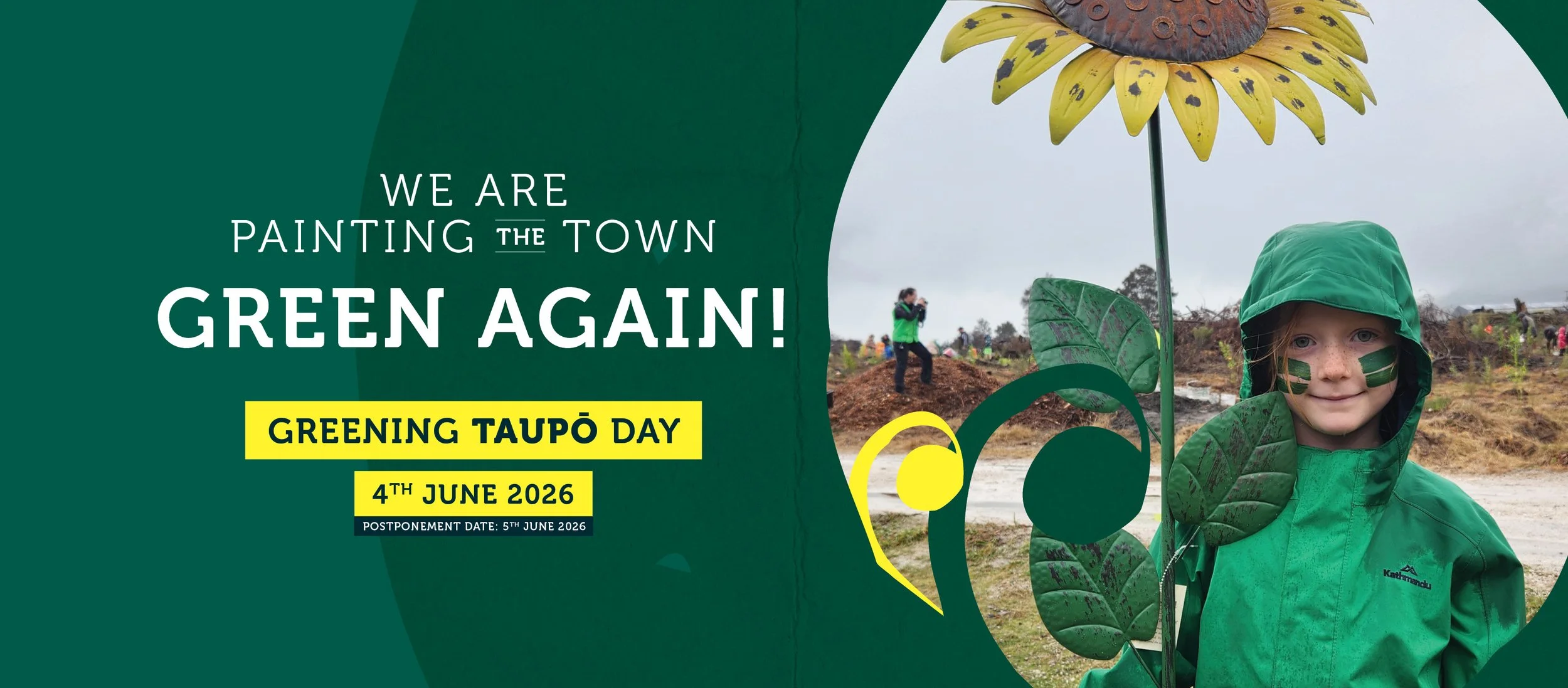 We are celebrating the great work that Greening Taupō and Kids Greening Taupō do in our community by ‘Greening Taupō’ again! Join us again June 4th, 2026 and together, let’s paint the town GREEN!